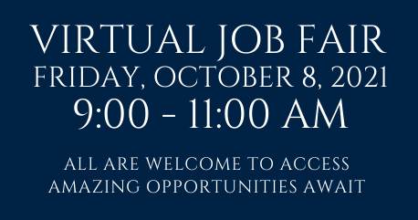 Access the Job Fair on October 8 at 9:00 am - www.tinyurl/jobfairvirtual